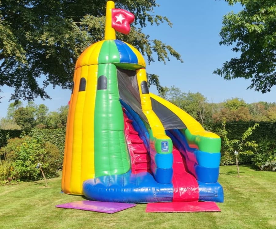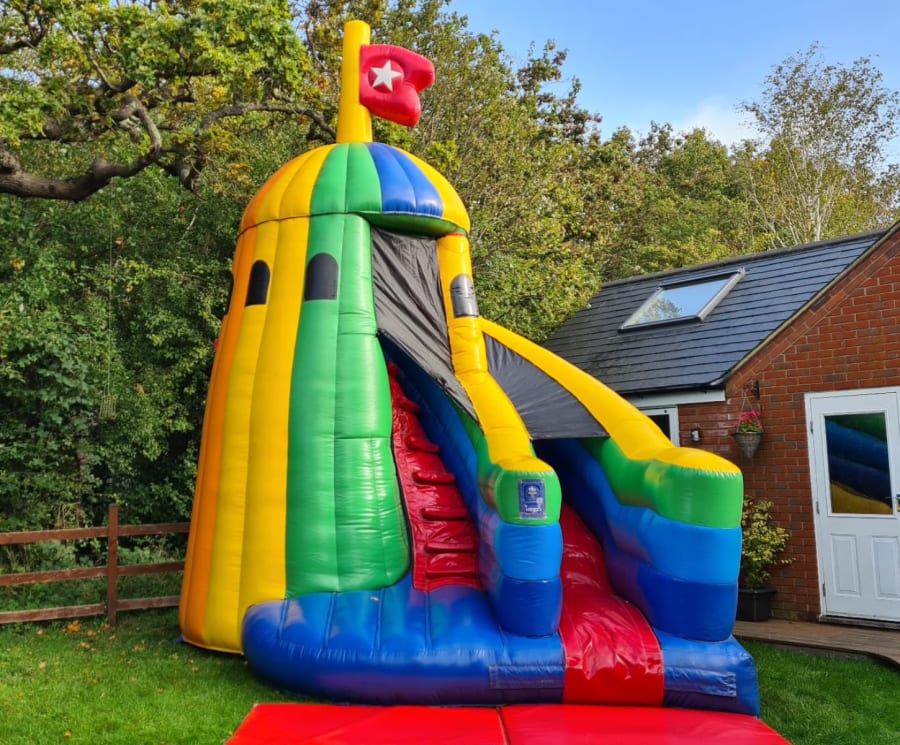 Our Multi Colour Helter Skelter Slide is available for full-day hire, with the earliest drop-off at 6am and the latest collection around 9pm. If you need an overnight hire, we offer that option for an additional £55.00. Please check with us regarding the dimensions of your gate or walkway to ensure smooth delivery.💰