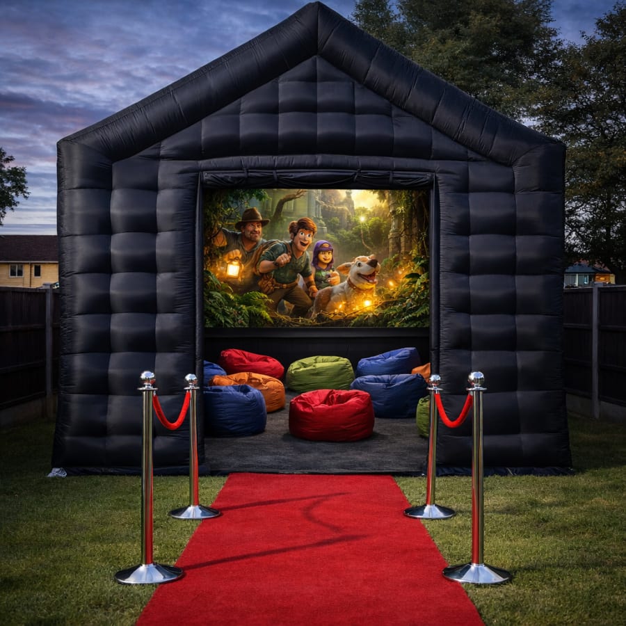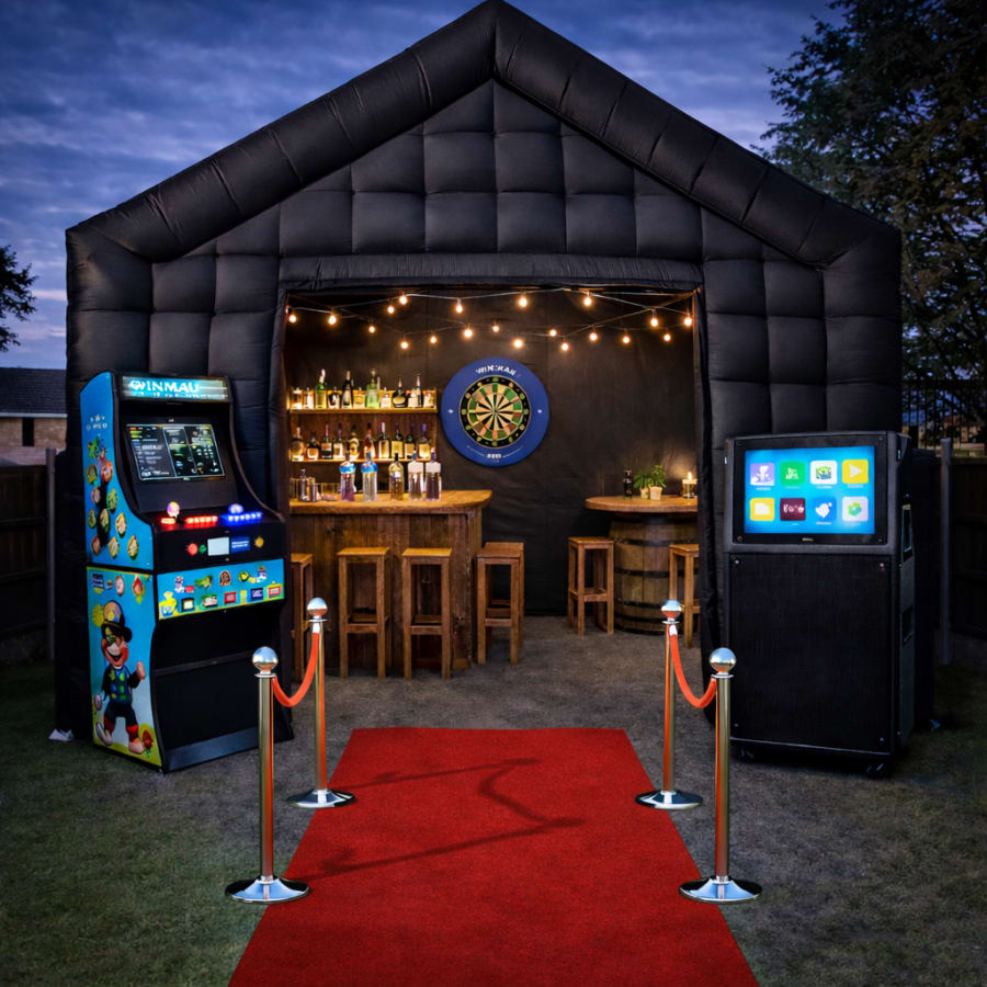 At the heart of this package is our impressive 18ft x 15ft Inflatable Marquee. This spacious inflatable structure creates a dedicated event zone that feels like your very own nightclub, cinema, or VIP lounge. Because it’s enclosed, it also helps protect the party from unpredictable weather, making it suitable for use all year round. Inside the marquee, guests can enjoy a high-energy Silent Disco experience with 10 silent disco headsets and vibrant disco lighting, filling the space with colour, movement and excitement.