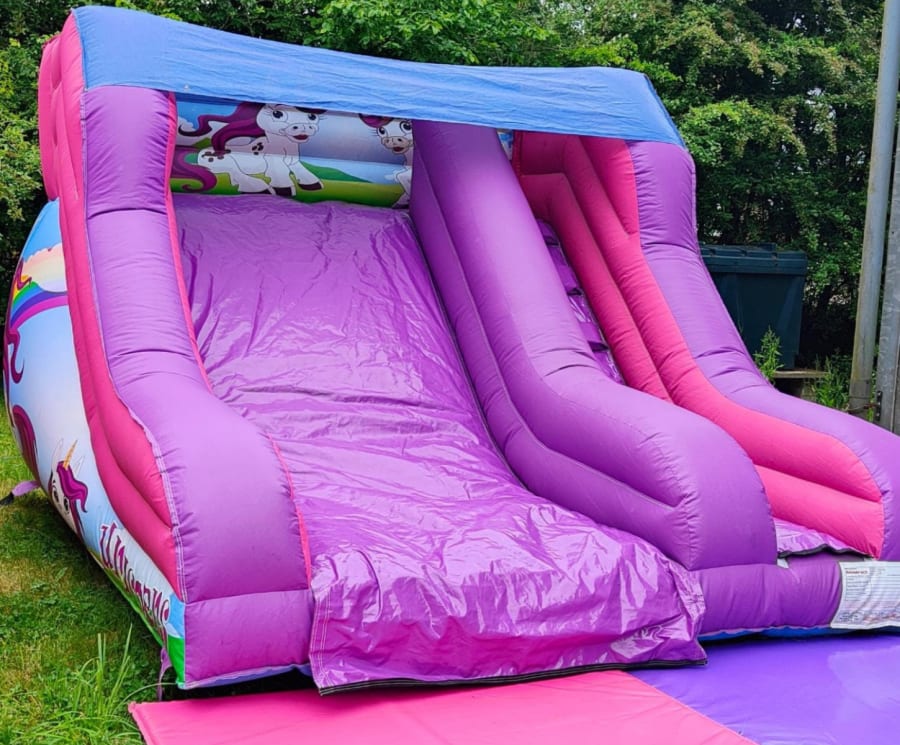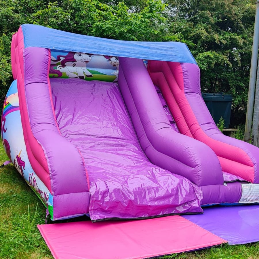 When you hire the Unicorn 5ft Slide, you'll receive everything you need for a successful playtime. The hire price includes a blower, extension leads, mats for entry and exit points, and pegs for secure installation. Our professional drivers will take care of the setup, ensuring a hassle-free experience for you.