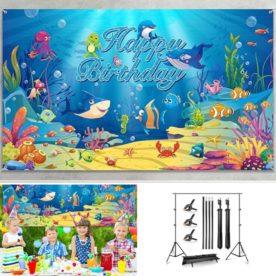 Whether you're hosting a birthday party, baby shower, or corporate event, our Sea World Backdrop with Stand is a versatile decoration that will captivate your guests. Pair it with balloon arches, inflatable sea creatures, or even a sandcastle prop to create a complete underwater scene. 🎈🏰