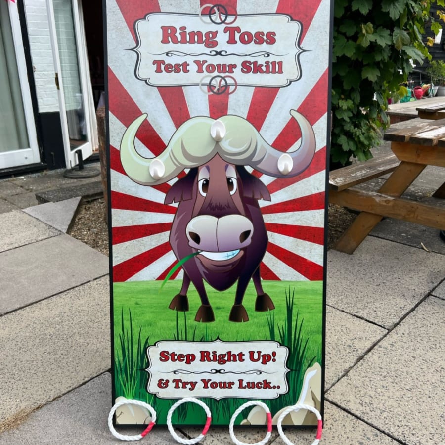 Elevate your event's entertainment with our Ring Toss game. Contact us today and let the fun begin as players aim to toss the quoit onto the horn! 🌟🎯🎉
