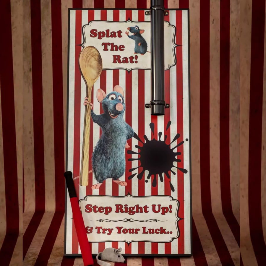 Make your event a blast with our Splat the Rat game! Contact us today to add this whacky and thrilling game to your line-up of fun activities! 🎩🐭🔨