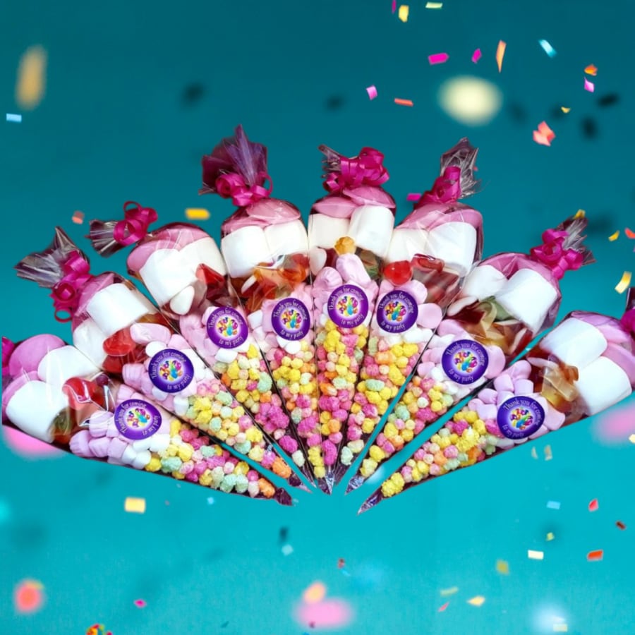 Each cone is carefully packed with a variety of sweets loved by children and adults alike. They can also be themed to match your event, making them ideal for: