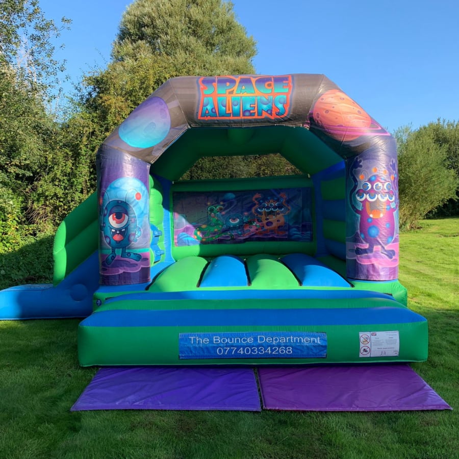 Calling all Earthlings! We’re excited to offer our Space Alien Bouncy Castle, available with or without a slide. It’s ideal for Space Parties, Alien-Themed Parties, school events, fun days and celebrations of all kinds — loved by both children and adults.