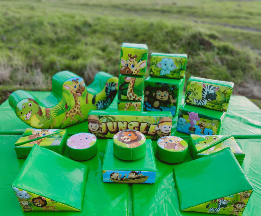 The Jungle Soft Play set is designed with the safety and comfort of little ones in mind. Made from soft and durable materials, this set includes a variety of jungle-themed shapes and objects that kids can stack, build, and play with. It's a great way to encourage imaginative play and develop fine motor skills.